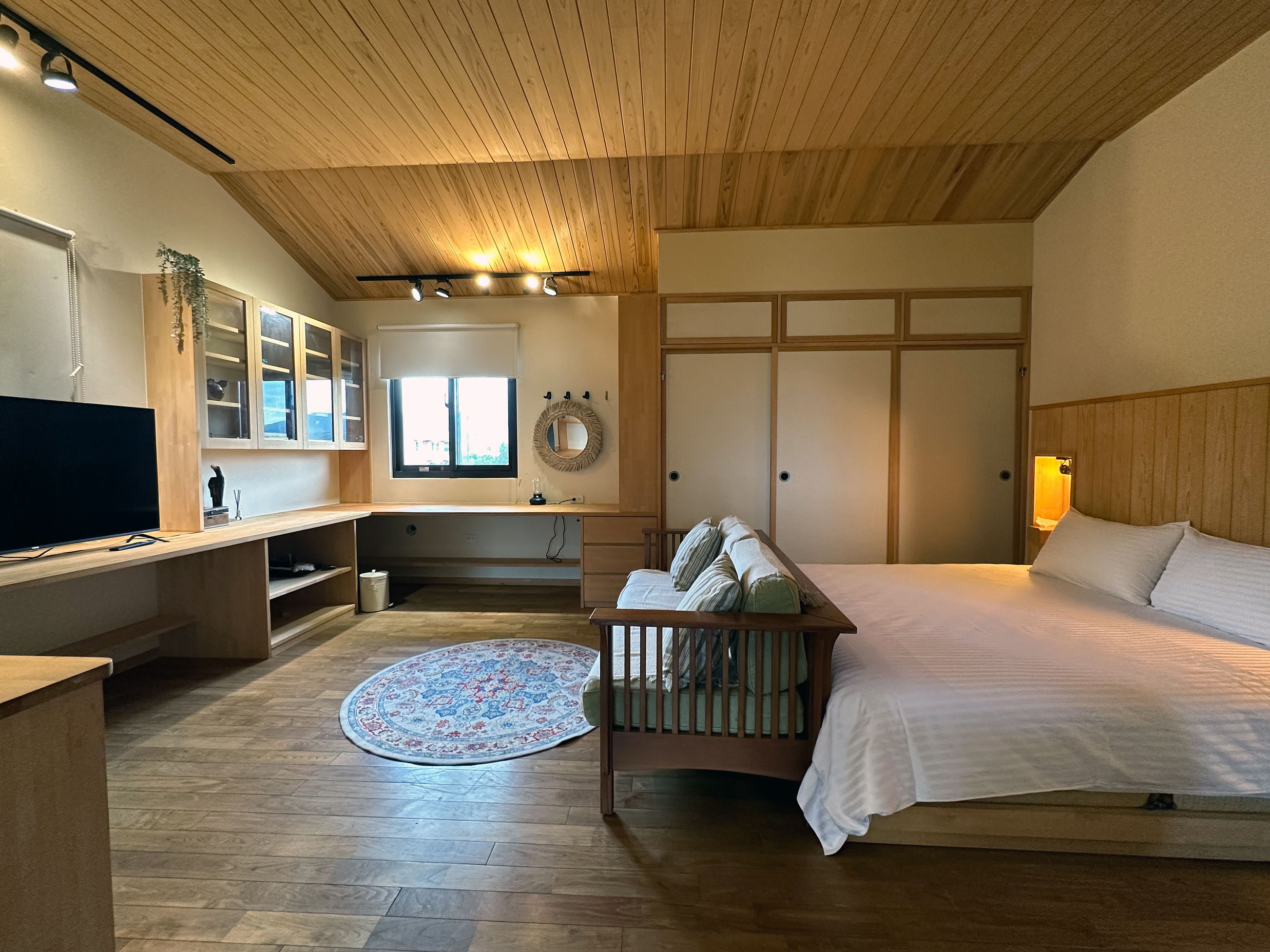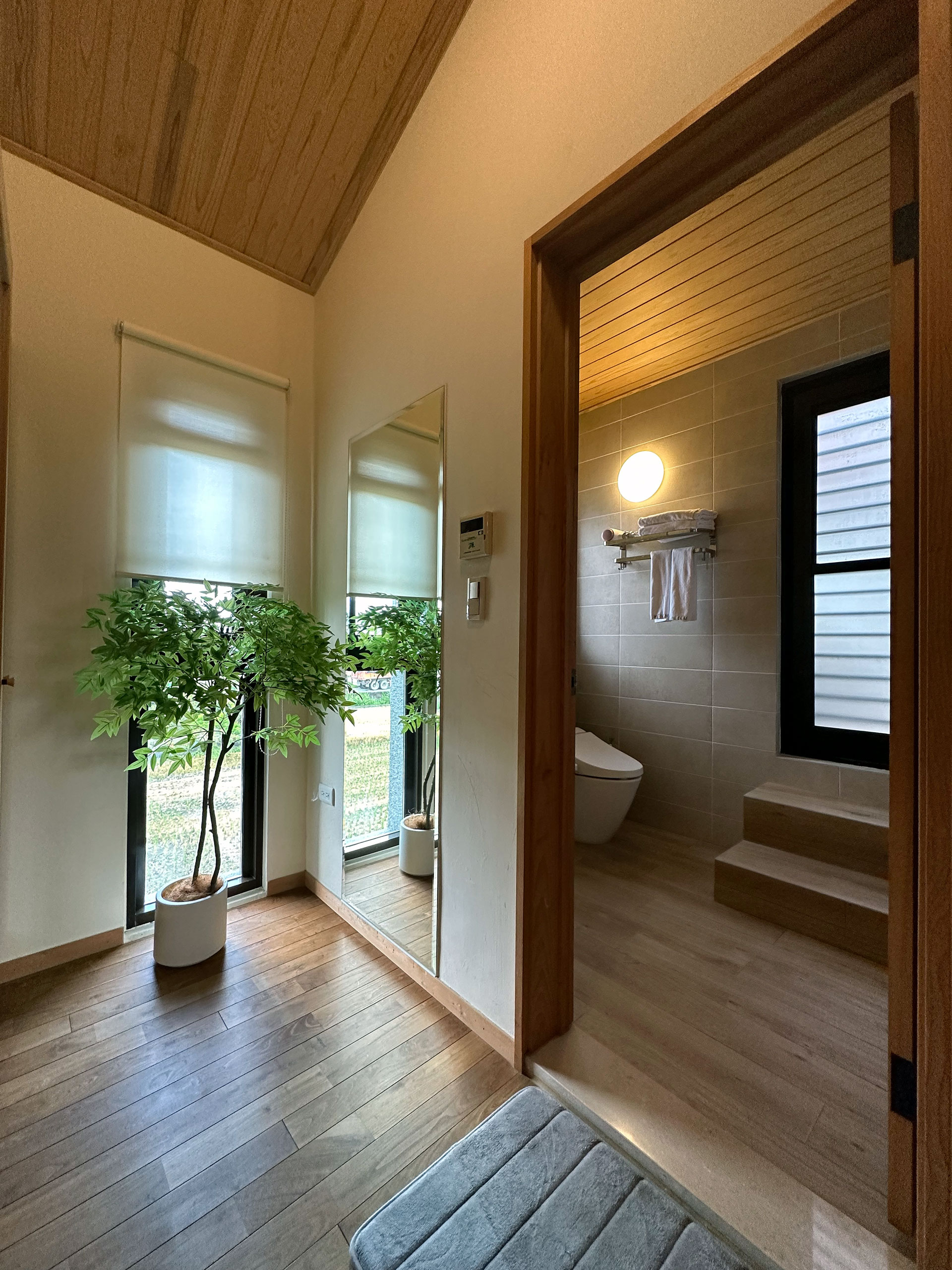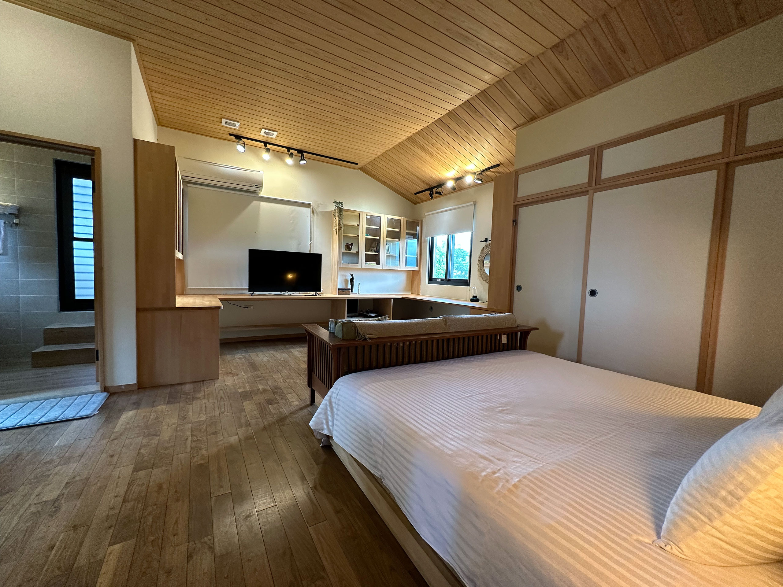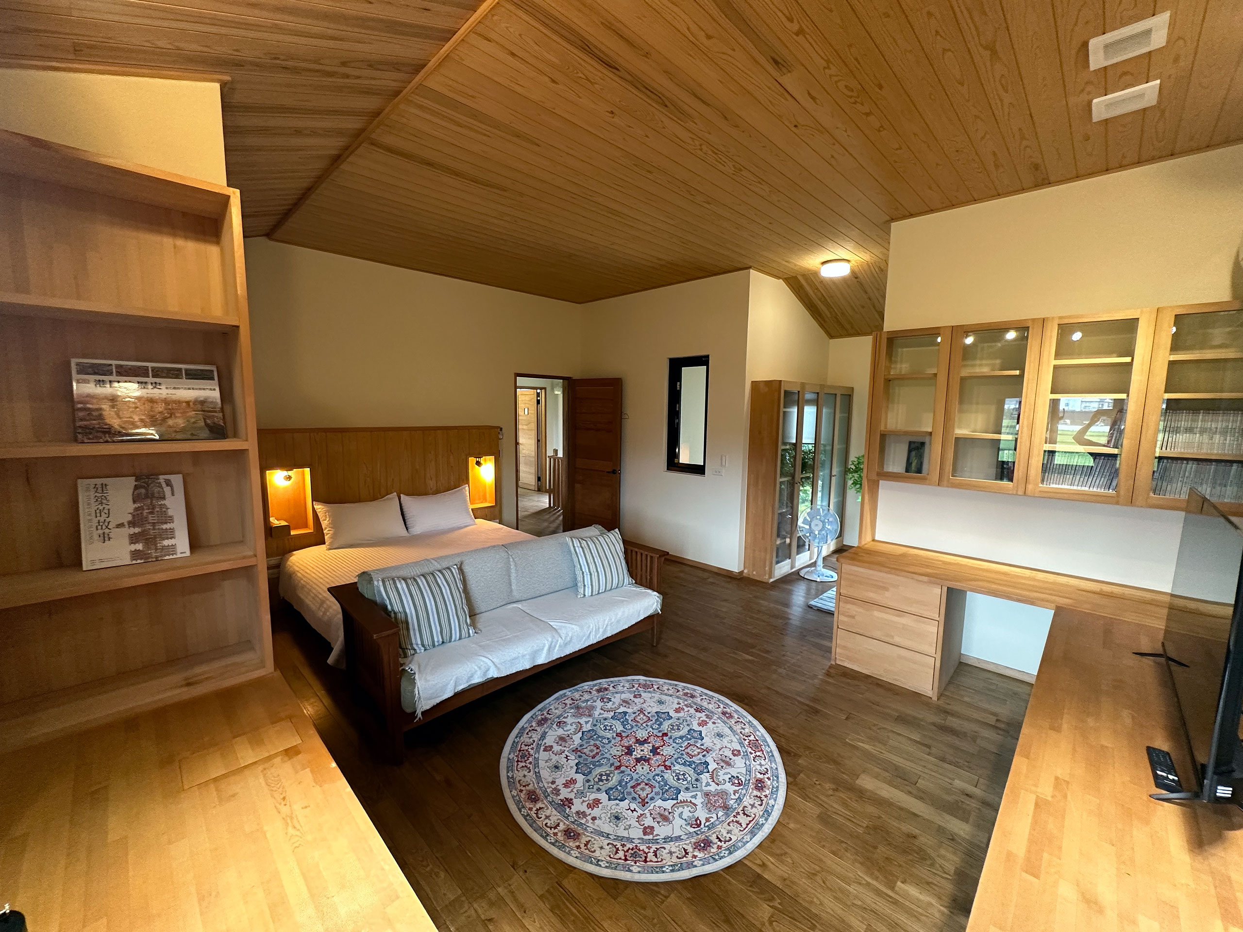 綠建築理念,日本建築師設計。全室無油漆,天然硅藻土塗布,原木室內建造。空間舒適乾燥溫馨,帶著田園的香氣。