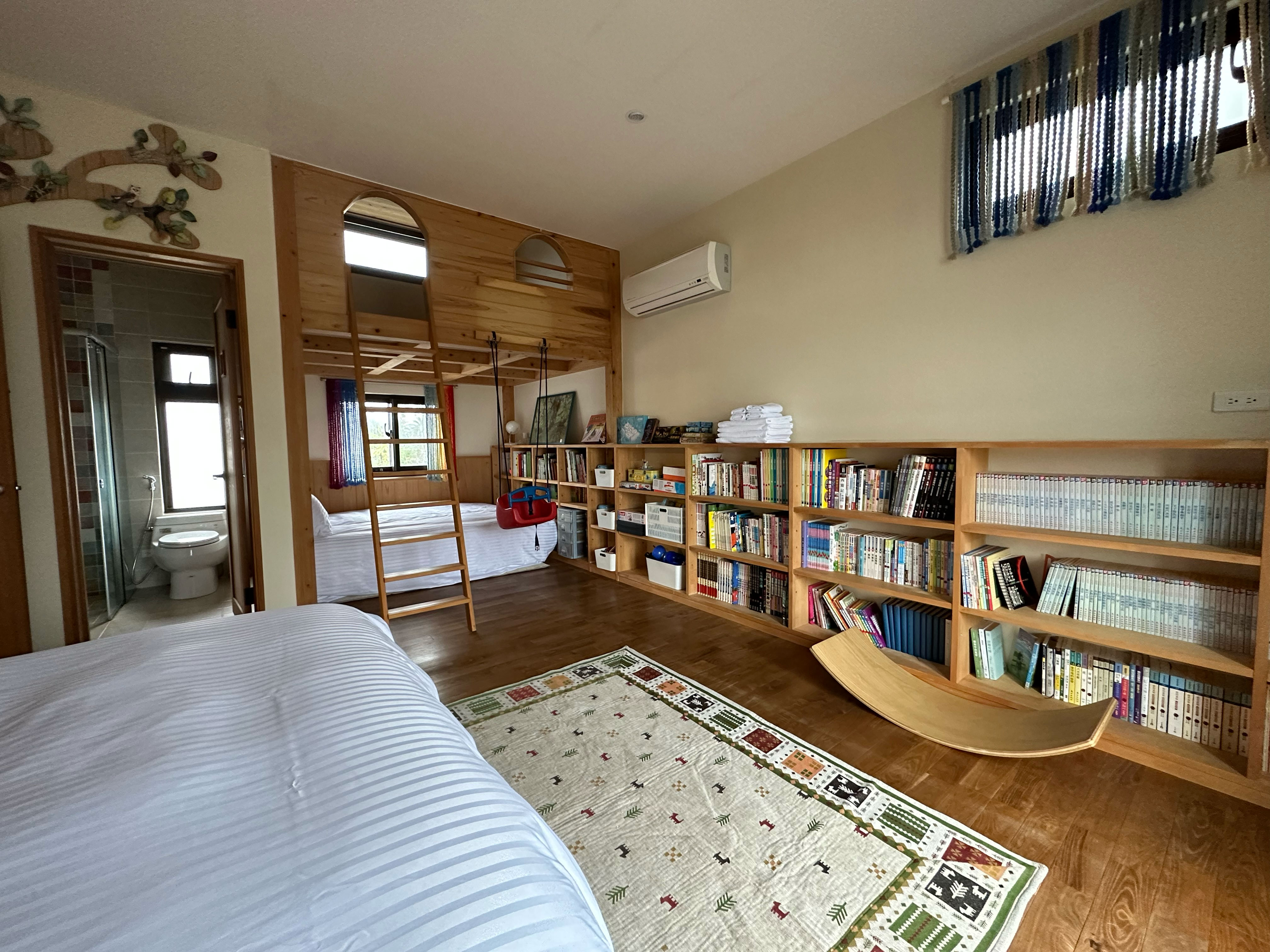 兒童遊戲木屋閣樓、滿滿童書。孩子的秘密基地,大人的安靜午後。